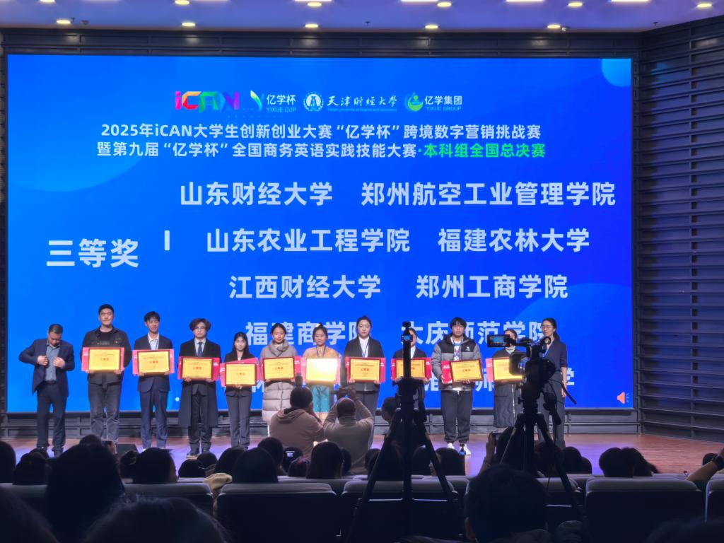 近日,2025年iCAN大学生创新创业大赛“亿学杯”跨境数字营销挑战赛全国总决赛暨第九届“亿学杯”全国商务英语实践技能大赛总决赛落下帷幕。av影片线上看 av影片线上看 学生黄楷钰、李婥妍、沈卓栋、张诗若、舒雨婷在王基昱、张智远老师的指导下斩获全国总决赛三等奖。