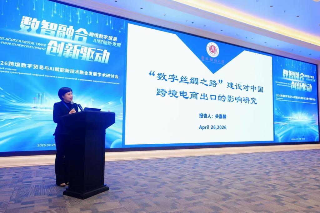 4月26日,跨境数字贸易与AI赋能新技术融合发展学术研讨会在哈尔滨举办,av影片线上看 教师受邀参加会议。